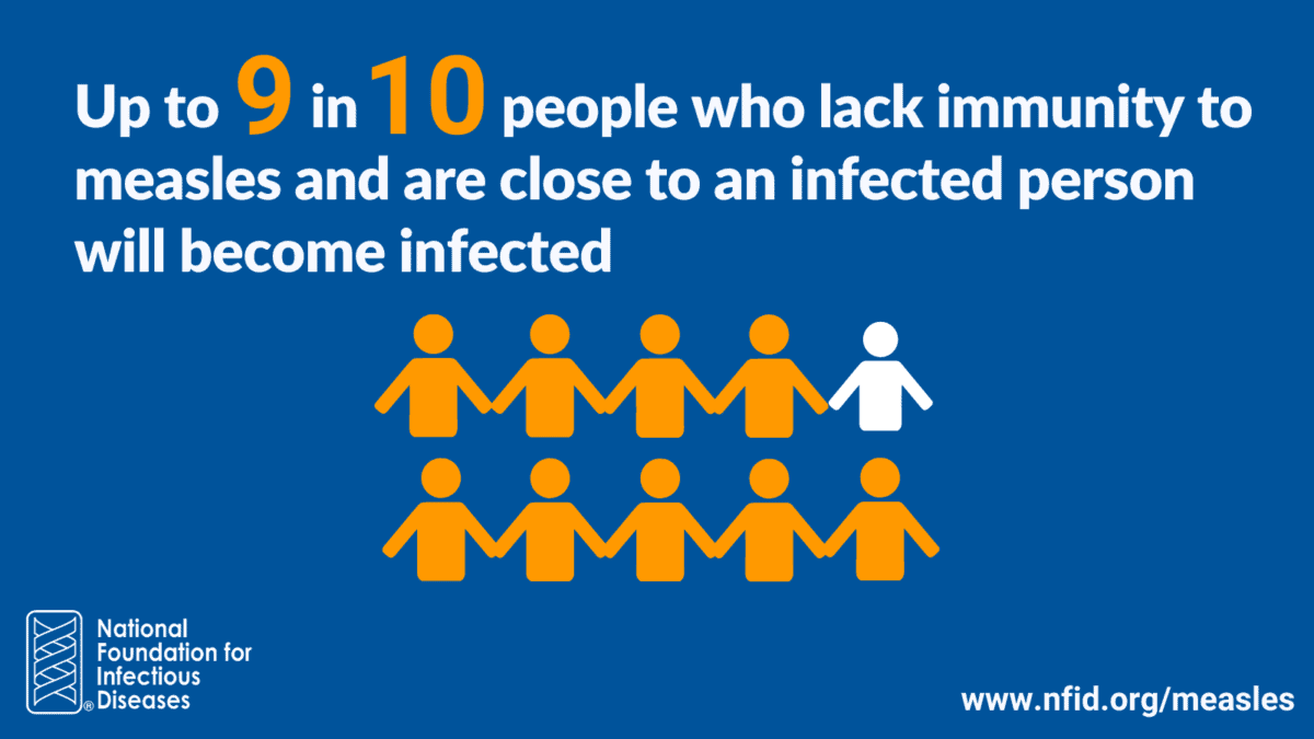 Measles is a highly contractable illness. The virus is airborne and is passed through coughs, sneezes, or talking. The virus lives in the infected droplets put into the air and can stay on surfaces for hours. A person can interact with this air or surface and infect themselves by touching their eyes, nose, or mouth. It is important to frequently wash your hands and wipe down surfaces, especially in high traffic areas. Do not sneeze into your hands and wash your hands after blowing your nose. Do not touch your eyes, to put in contacts for example, without thoroughly washing your hands first. If you find yourself having finger-food at mealtimes, be sure to wash your hands before eating.